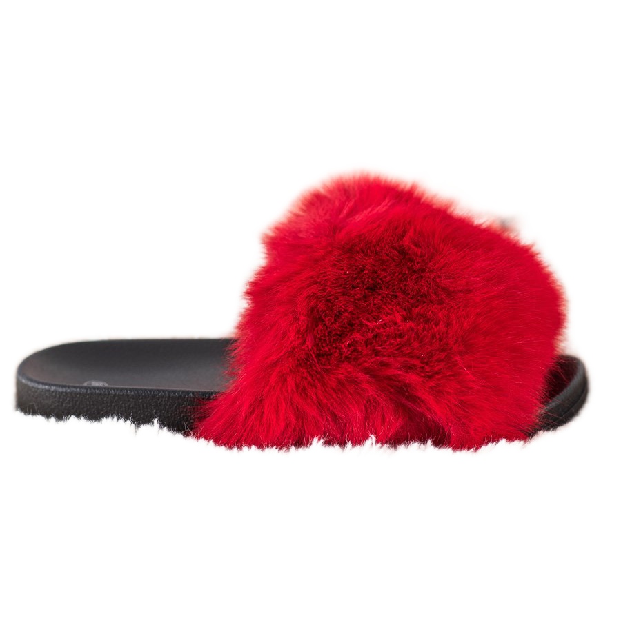 Details: SHELOVET Bequeme Pelzpantoffeln rot