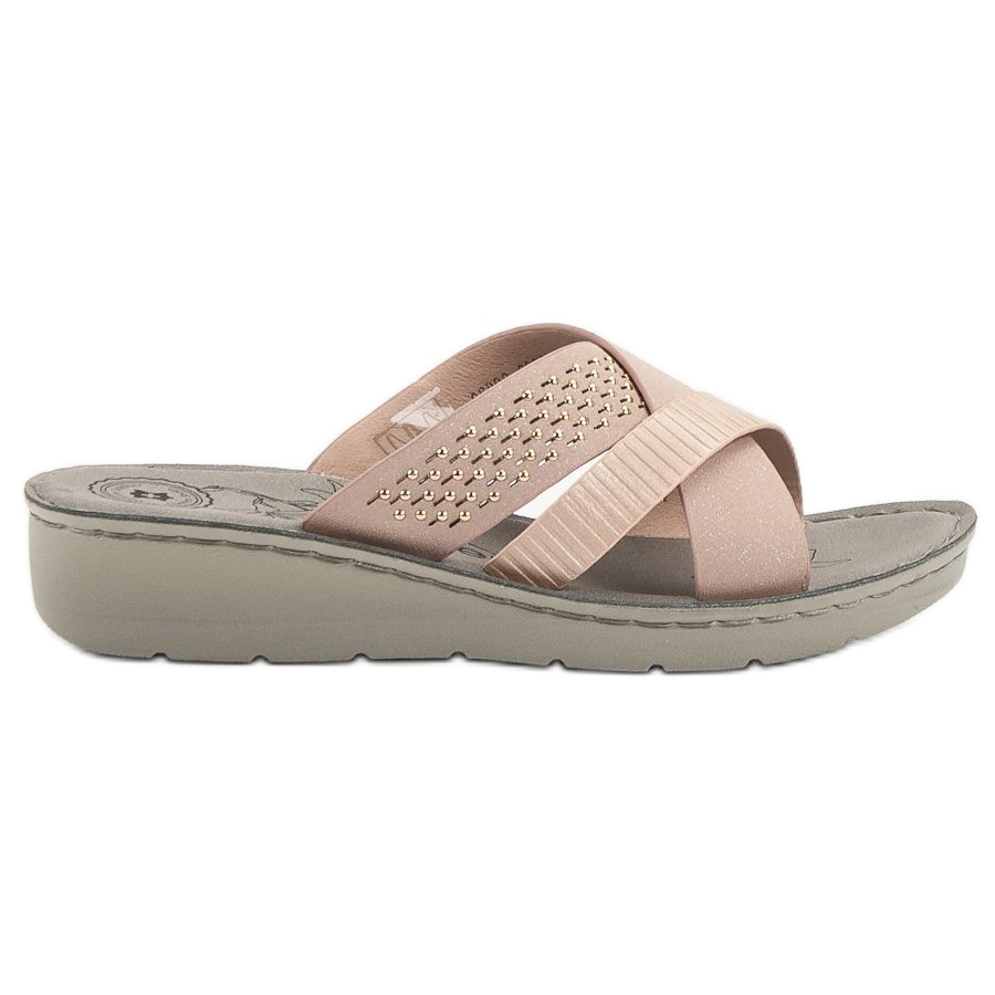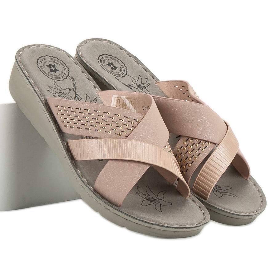 Wir präsentieren phänomenale rosafarbene Damen-zehenstegsandalen der Marke Evento, die die perfekte Wahl für Sommertage sind. Diese bezaubernden Schuhe vereinen Komfort und Ästhetik und ihre schöne rosa Farbe verleiht jedem Styling Frische. Die zehenstegsandalen verfügen über einen zarten 4 cm hohen Keilabsatz, der ihnen nicht nur ein attraktives Aussehen verleiht, sondern auch die Beine optisch verlängert und schlanker macht.