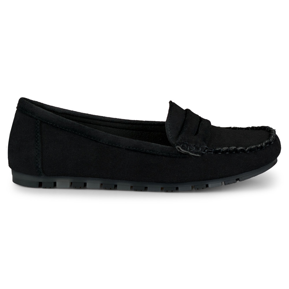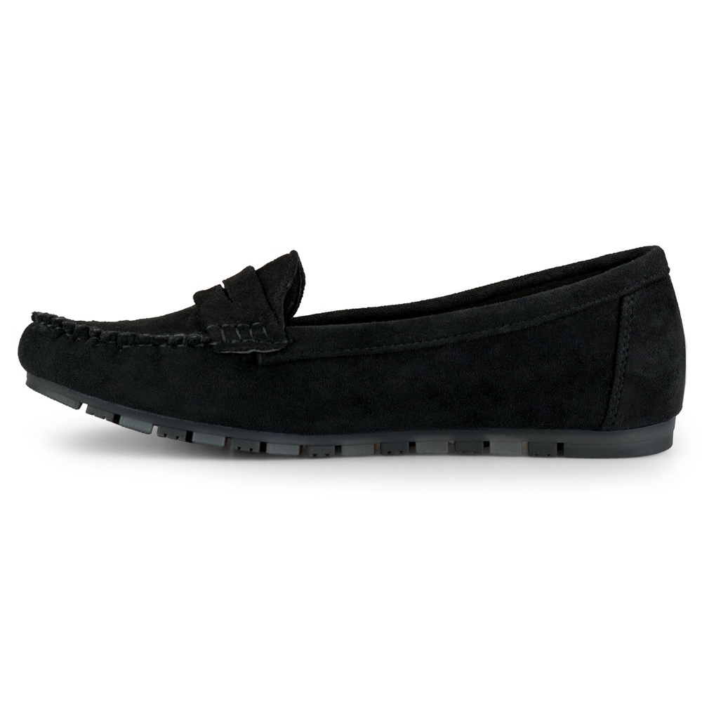 Bequeme Schwarz -Frauen -Slipper - ein Klassiker in einer modernen Ausgabe. Das schwarze ökologische Wildleder am oberen und ein natürlicher Ledereinsatz bietet einen eleganten Aussehen und Komfort des ganzen Tages. Eine flache, gepolsterte synthetische Sohle und ein Schiebendesign machen die Schuhe praktisch und einfach zu bedienen - perfekt für Frühling und Sommer.
