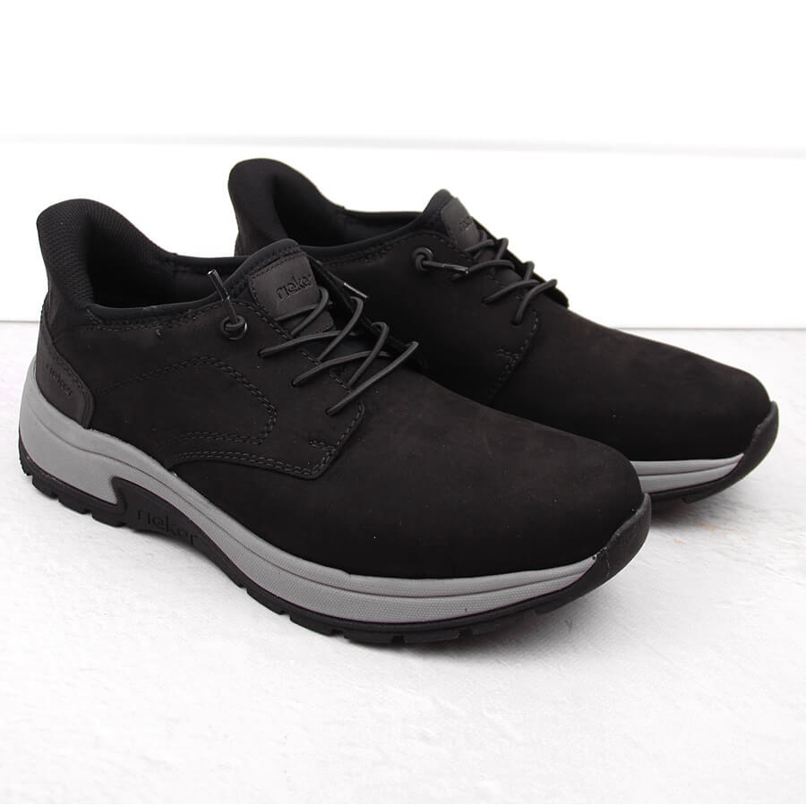 Details: Bequeme schwarze Herrenschuhe aus Leder Rieker 11050-00
