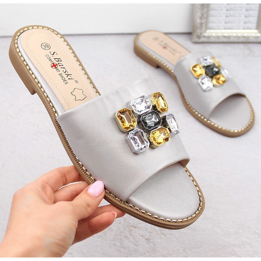 Entdecken Sie Eleganz und Komfort in einem Paar Schuhen! Frauenschuhe S. Barski 031 ist die perfekte Wahl für Frauen, die Komfort und einen modischen Look schätzen. Diese mit effektiven Zirkonen dekorierten Silberflip -Flops sind sowohl jeden Tag als auch während Sommerreisen perfekt.