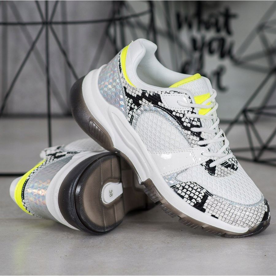 Lernen Sie Kylies bequeme Sneaker in elegantem Weiß mit modischem Schlangenprint-Motiv kennen! Diese Sportschuhe wurden für aktive Frauen entwickelt, die Wert auf Komfort und Stil legen.