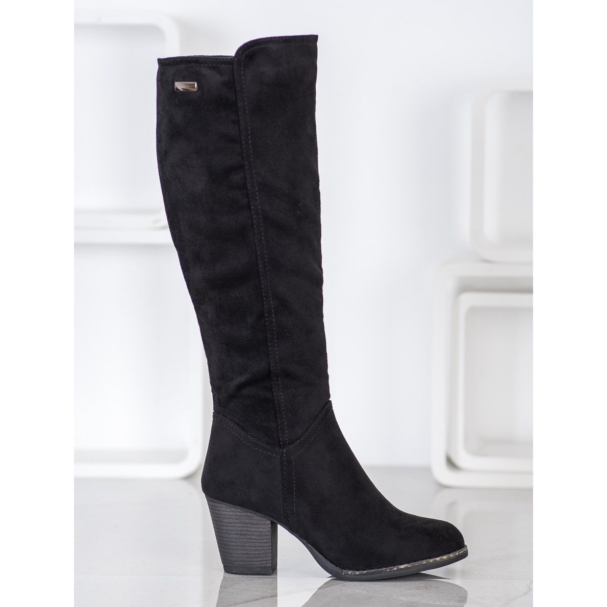 Entdecken Sie Eleganz und Komfort mit hochhackigen Stiefeln des Herstellers J. Star. Diese stilvollen schwarzen Stiefel sind die perfekte Wahl für Frauen, die klassischen Stil mit modernem Design kombinieren möchten. Sie bestehen aus hochwertigem, ökologischem Wildleder und reichen bis zum Knie, wodurch sie sowohl zu lässigen als auch zu eleganteren Styles eine tolle Figur machen.