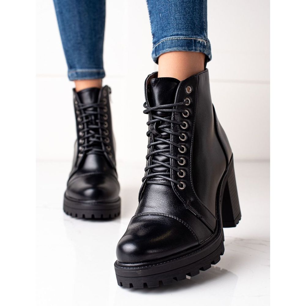 Wir präsentieren Ihnen bequeme High-Heel-Stiefeletten des Herstellers Sweet Shoes – die perfekte Wahl für jede Frau, die jeden Tag auf der Suche nach Eleganz und Komfort ist. Diese schwarzen Stiefeletten sind die Essenz des lässigen Stils und eignen sich sowohl für Alltagsausflüge als auch für Abendpartys.