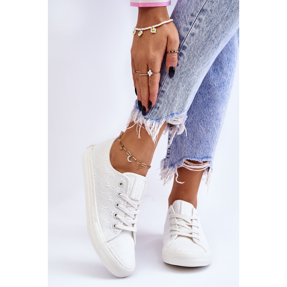 Details: Big Star bestickte Damenturnschuhe LL274223 Weiß