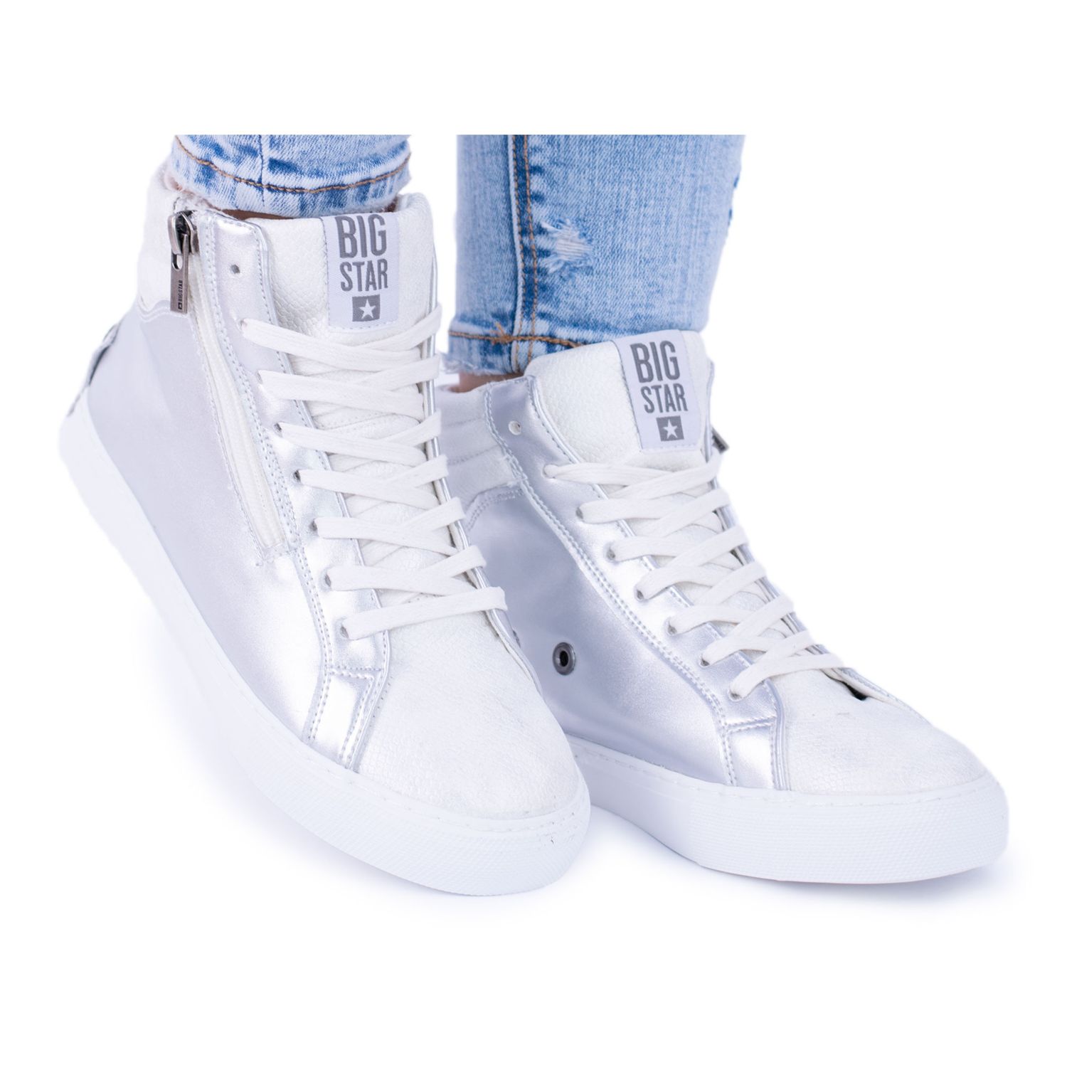 Details: Big Star Damen Hohe Silberne Turnschuhe BB274727 weiß grau