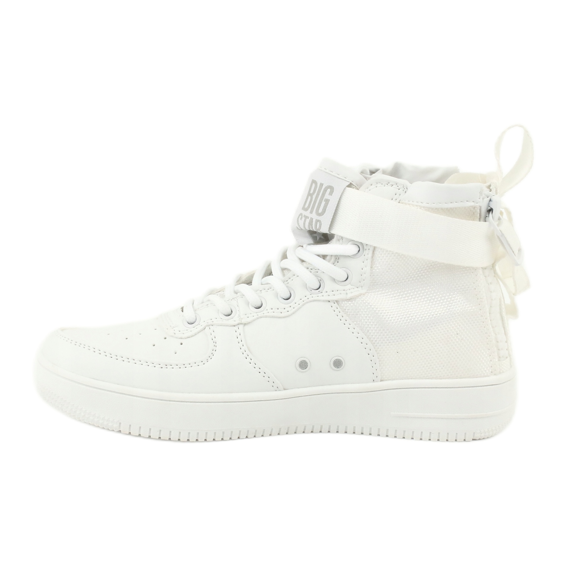 Big Star 274648 - Weiße Turnschuhe (hoch), aus ökologischem Leder mit Materialeinsätzen. Täglich bequeme und stilvolle Schuhe - perfekt für einen Spaziergang, eine Stadt und Reisen. Das klassische Erscheinungsbild in Kombination mit praktischen Lösungen macht es zu einer universellen Wahl für viele Stile.