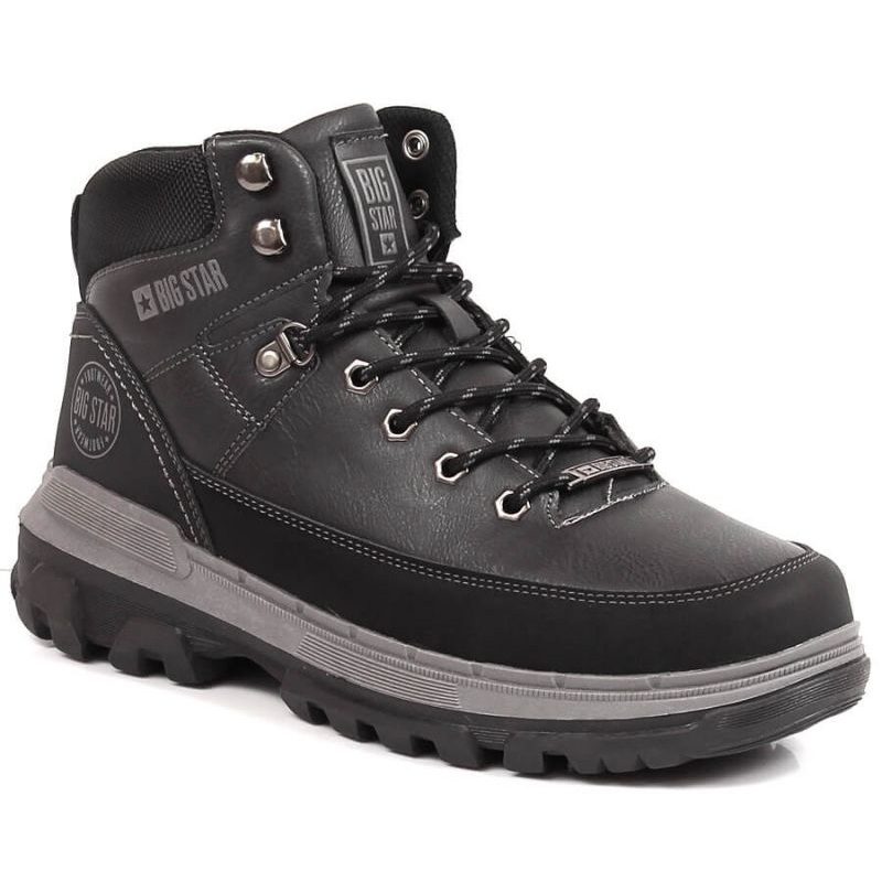 Big Star INT1801C -Stiefel - Schwarze, stilvolle und universelle Herrenschuhe für den täglichen Gebrauch. Das Knöchelmodell kombiniert städtische Ästhetik mit praktischen Lösungen: Schnürung nach perfekter Passform, eine Textilfutter für Komfort und eine Gummisohle, die einen guten Griff bietet. Hergestellt aus hochwertigen synthetischen Materialien in elegantem, universellem Schwarz - leicht zu kombinieren mit verschiedenen Stilen.