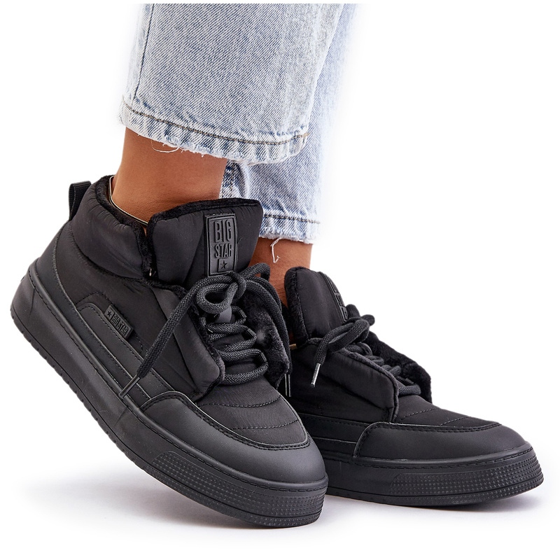 Das geschnürte Modell greift in den Knöchel, wodurch es die Füße perfekt vor der Kälte schützt. Darüber hinaus sorgt die innere Erwärmung in Form von Fell auch an den kältesten Tagen Wärme. Big Star Sneakers in Black passt perfekt zu alltäglichen, lässigen Stylisationen und verleihen ihnen einen modischen und modernen Look.