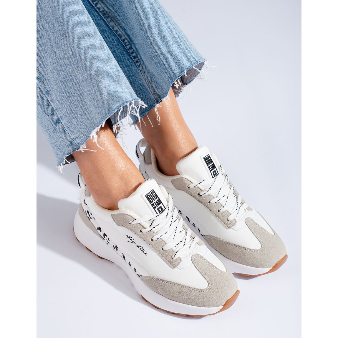 Wenn Sie auf der Suche nach Schuhen sind, die Alltagskomfort perfekt mit einem modischen Sportstil verbinden, sind die weißen Sportschuhe Big Star LL274957 eine ausgezeichnete Wahl. Besorgen Sie sich ein Geschenk in Form von Schuhen, die jede, auch die anspruchsvollste Garderobe, erfolgreich ergänzen.