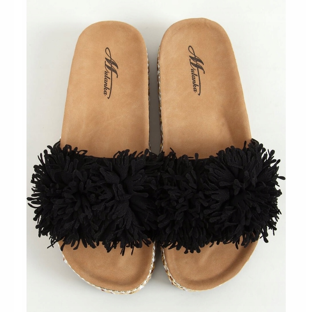 Inna marka Black 2260 Schwarze Pantoffeln auf der verzierten Sohle