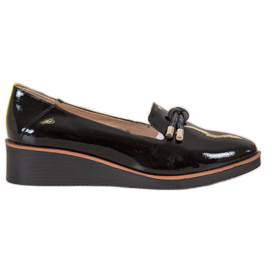 Die Black Lords Wedges VINCEZA sind die perfekte Wahl für Frauen, die eine Kombination aus Eleganz und Alltagskomfort suchen. Diese stilvollen Schuhe bestehen aus hochwertigen Materialien und verfügen über eine lackierte Oberfläche, die das Licht wunderschön reflektiert und jedem Outfit einen luxuriösen Charakter verleiht.