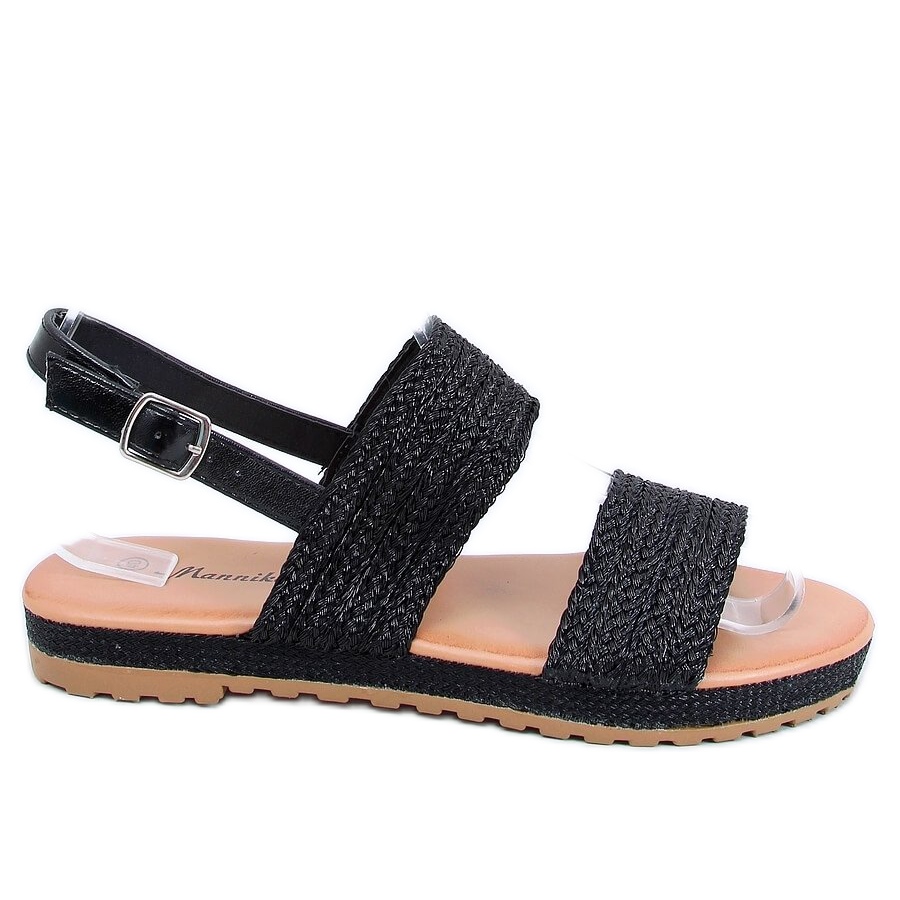 Inna marka Black WL1593 Schwarze geflochtene Sandalen