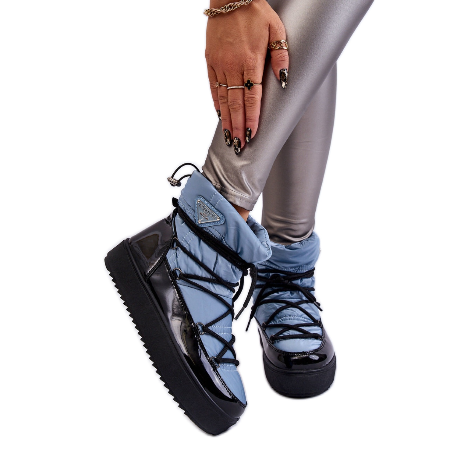 Details: Blaue Damen-Schneestiefel zum Schnüren