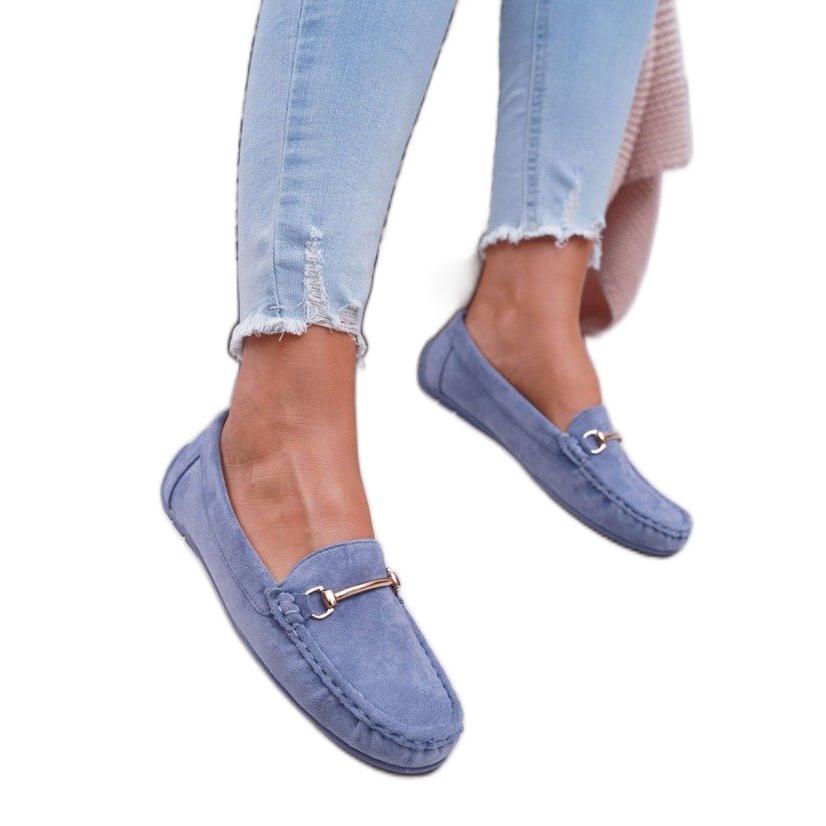 Das Obermaterial der Mokassins besteht aus hochwertigem ökologischem Wildleder, das für Weichheit und Tragekomfort sorgt. Die blaue Farbe verleiht ihnen ein frisches und stilvolles Aussehen, und die Metallverzierung auf der Vorderseite des Obermaterials zieht die Aufmerksamkeit auf sich und verleiht den Schuhen einen originellen Charakter.