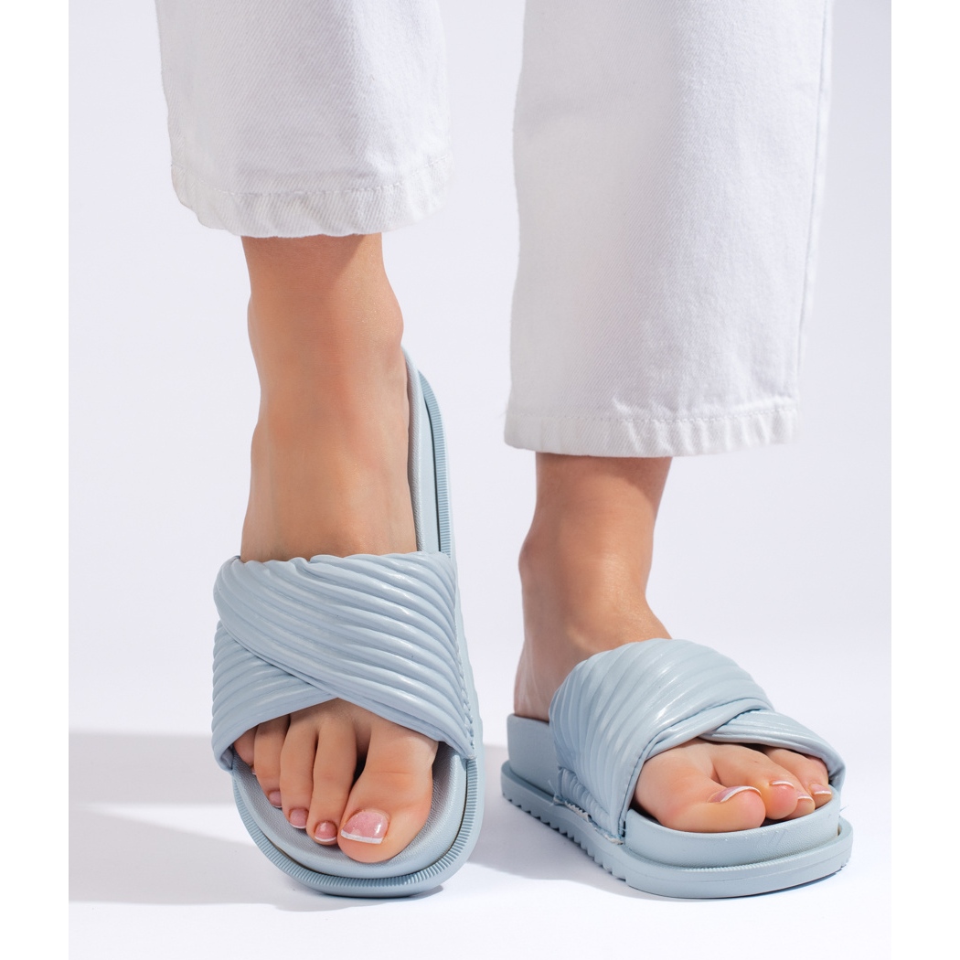Wir präsentieren Blue Flat -Frauen -Hausschuhe aus einer seriösen Marke, die Stil, Komfort und Funktionalität kombiniert. Diese lässigen Flip -Flops sind jeden Tag eine gute Wahl, perfekt für Sommerspaziergänge, zum Strand oder mit Freunden.
