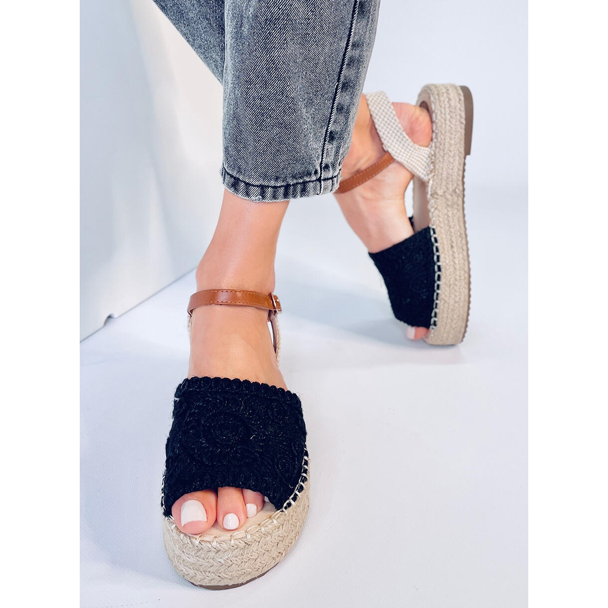 Inna marka Boho Ingram Schwarze Espadrille-Sandalen