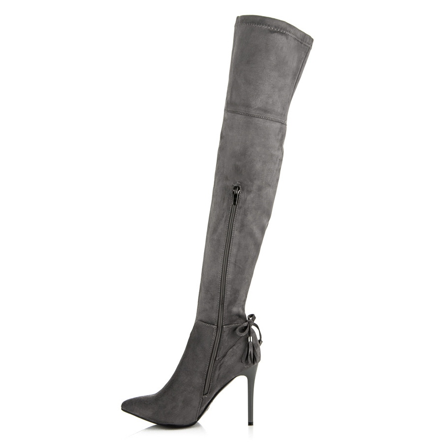 Die Höhe des Schaftes über dem Knie und die runde Spitze sind Merkmale, die für außergewöhnlichen Tragekomfort sorgen und gleichzeitig die femininen Vorzüge der Figur betonen. Ein 9 cm hoher Absatz sorgt für Eleganz und der Stiletto-Absatz macht jeden Schritt zum Vergnügen. Die Stiefel haben keine Isolierung, was sie zu einer idealen Wahl für Frühling und Herbst macht.