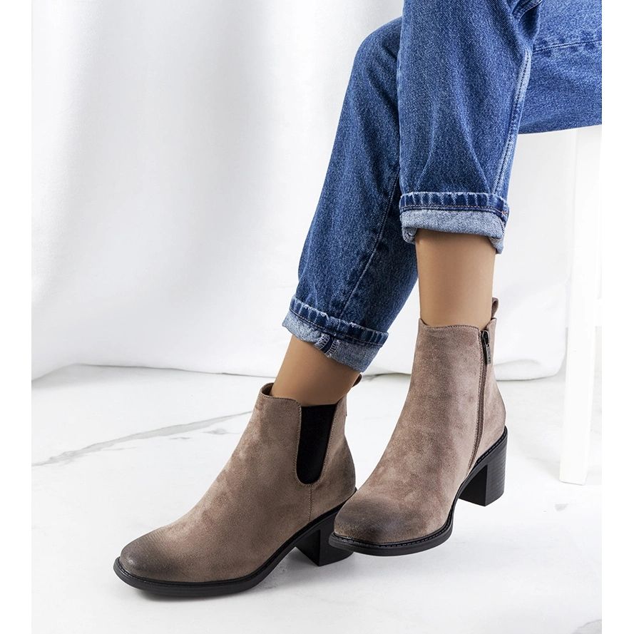 Elegante, komfortable und universelle - Aston -Stiefel sind ein Vorschlag für kühlere Tage und kombinieren einen zeitlosen Schnitt mit praktischen Lösungen. Sie bestehen aus glattem Ekozamsz in der Farbe des dunklen Taupe, eingebettet in eine stabile Ferse wie einen Beitrag, sie sind im Alltag und Winterstilisierungen großartig.