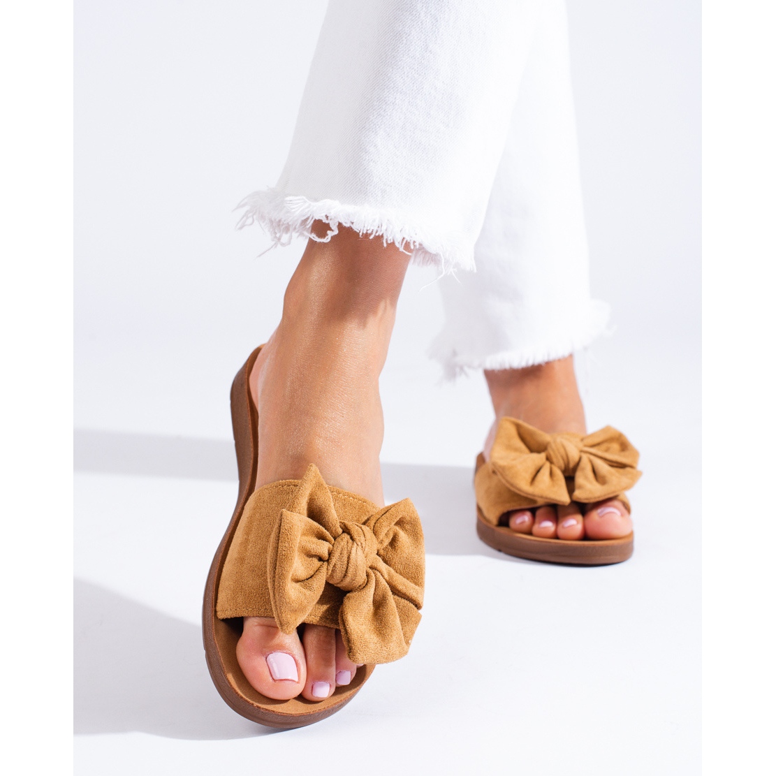 Braune Damenhausschuhe mit Schleife von Shelovet sind die perfekte Wahl für Frühlings- und Sommertage. Diese lässigen zehenstegsandalen begeistern mit einem schlichten, aber eleganten Design, das sich perfekt in den Alltagsstil einfügt.