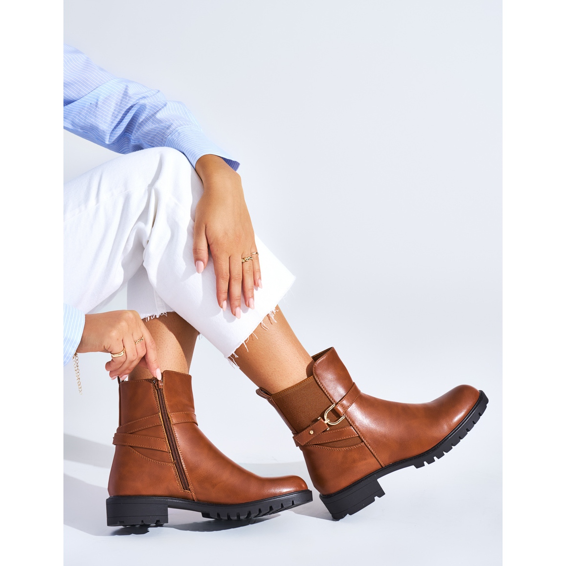 Inna marka Braune Damenstiefeletten mit dekorativer Schnalle