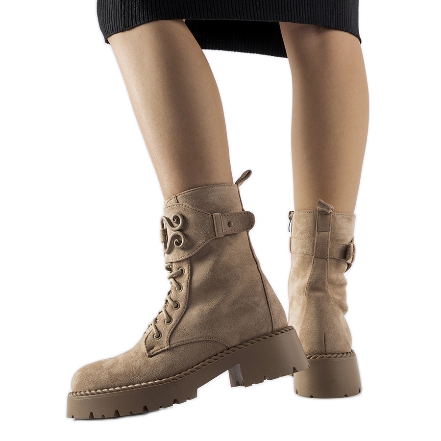 Magst du praktische und modische Schuhe? Die Arbeiter dieser Frauen im Khaki -Schatten verbinden Komfort mit dem städtischen Charakter. Sie bestehen aus ökologischem Wildleder, isoliert und greifen nach dem Knöchel und sind in der Herbst -Winter -Saison großartig. Die runde Nase verleiht Ihren Füßen den rechten Raum, und 5 cm verlängert die Plattform die Figur auf subtile Weise und verleiht dem täglichen Ausgang Vertrauen.