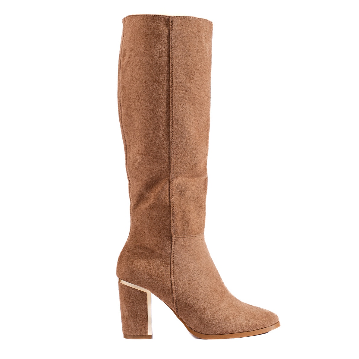 SHELOVET Braune elegante Wildlederstiefel mit hohen Absätzen von Shelovet beige