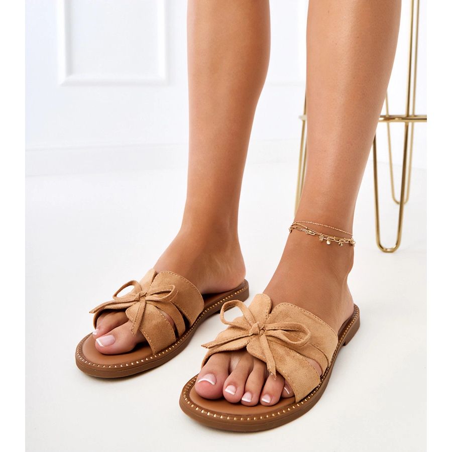 Brown Flip -Flops mit einem Bogen sind ein universelles Modell, das perfekt zu lässiger und eleganteren Stylisationen passt. Unabhängig von der Gelegenheit ergänzen diese Flip -Flops Ihre Outfits und lassen Sie immer stilvoll aussehen.
