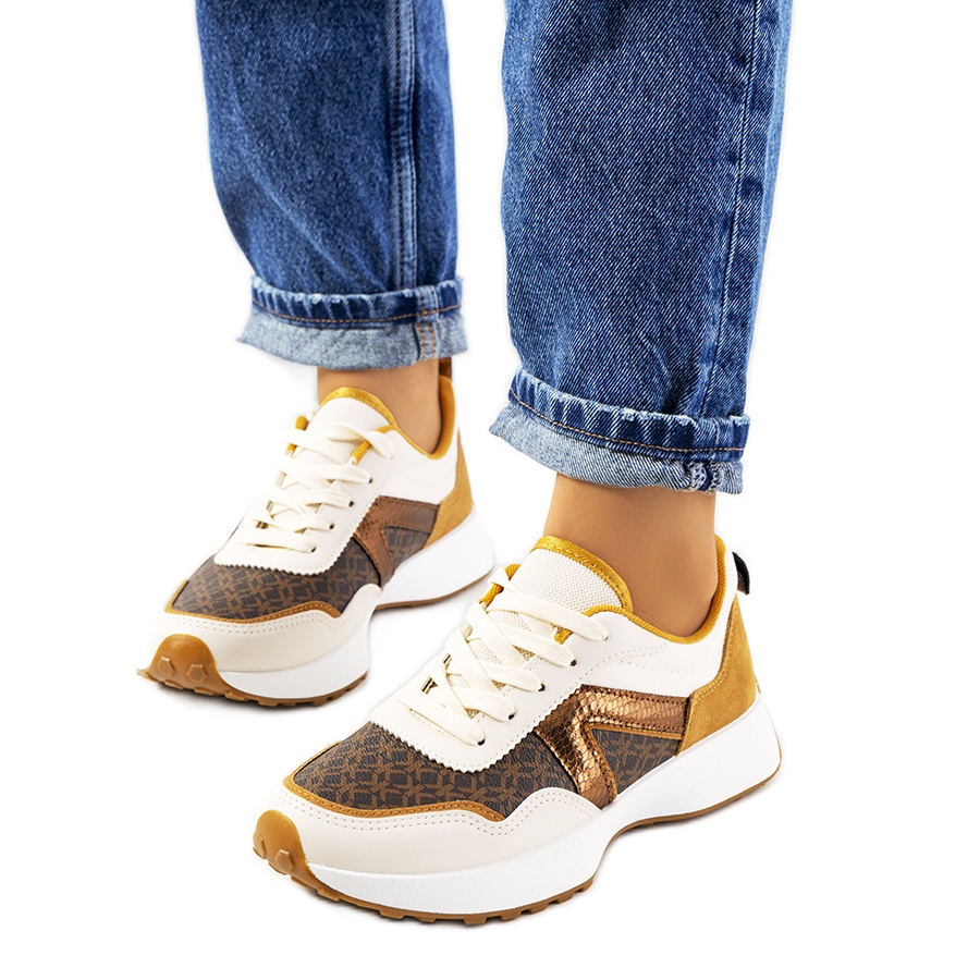 Der moderne, sportliche Isamer -Styon ist eine perfekte Ergänzung zu Sommer- und Jahr -Rund -Stylisationen. Die subtile beige -kamelfarbene Farbe, die durch einen metallischen Akzent gebrochen wurde, fügt Charakter hinzu, und die hohe, weiße Sohle mit einer Höhe von 3,5 cm passt zu aktuellen Trends, während sie Stabilität und optische Auswahl der Silhouette gewährleistet.