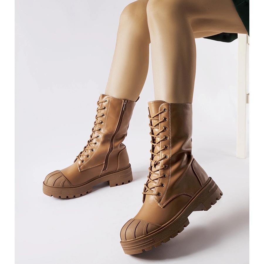 Cardinale -Arbeiter sind eine Kombination aus praktischer und modisches Erscheinungsbild. Sie bestehen aus Bio -Leder in einem Schatten von Khaki/Braun, mit Erwärmung und bieten thermische Komfort während kühlerer Tage. Der hohe Schnitt des Knöchels und des Schnürschließes ermöglicht eine gute Passform zum Bein, die runde Nase und eine einfache, flache Absatz (4,5 cm) garantieren Stabilität und Komfort beim Gehen.