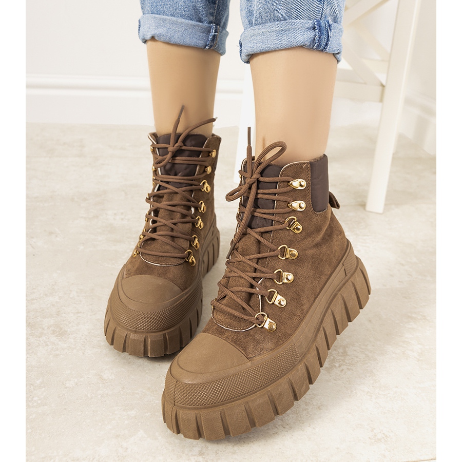 Die braunen isolierten Damen-Schnürstiefel von Calabresi sind die perfekte Wahl für kältere Tage. Dank ihres klassischen Designs vereinen diese eleganten Schuhe Funktionalität und Stil. Sie sind aus hochwertigem Öko-Wildleder gefertigt, bieten Tragekomfort und sind umweltfreundlich.