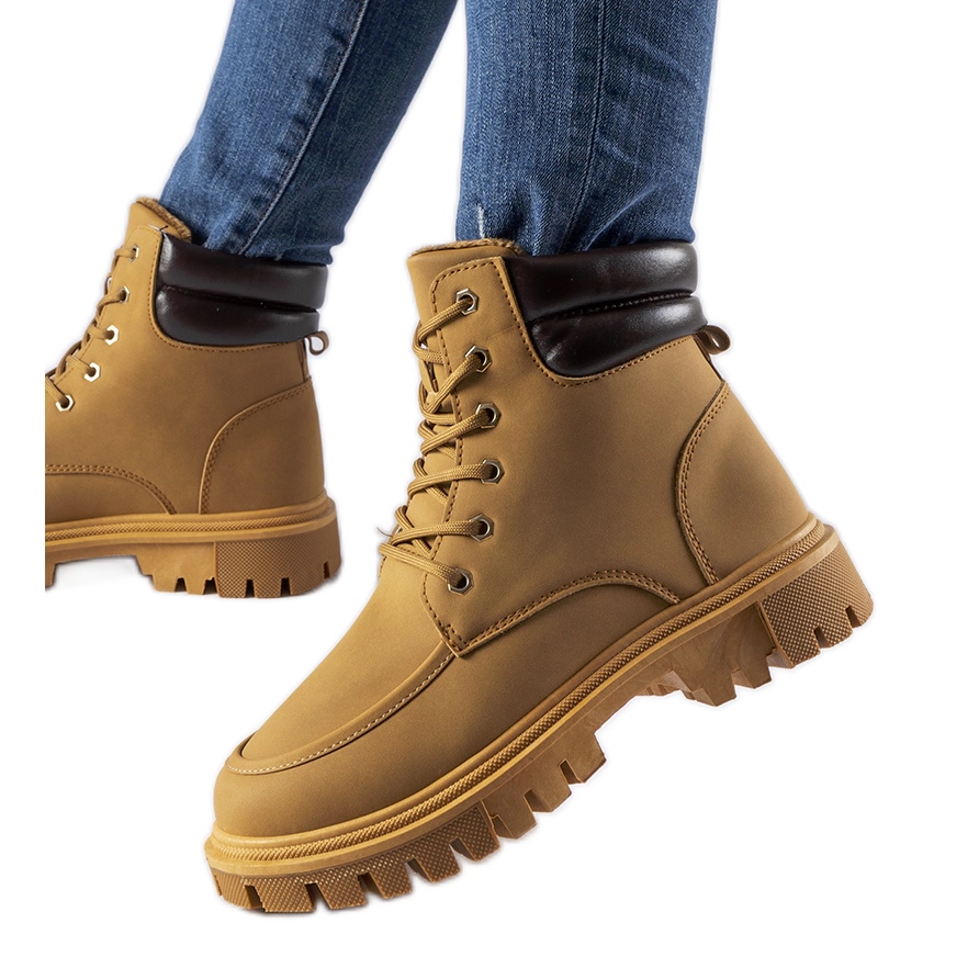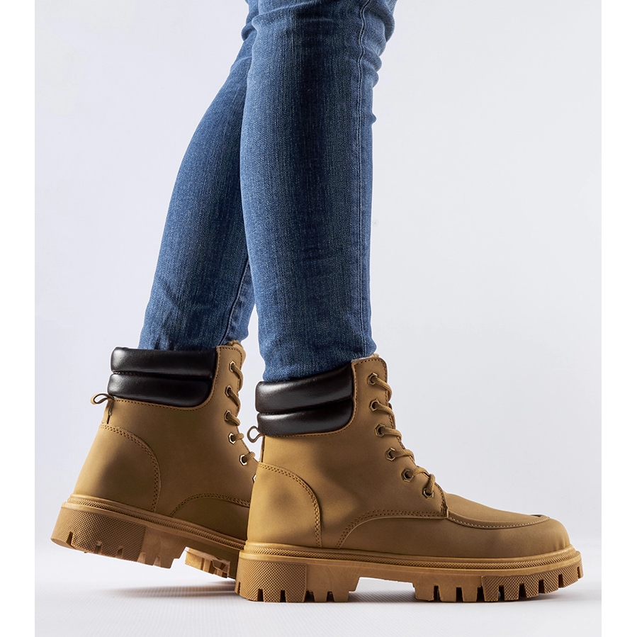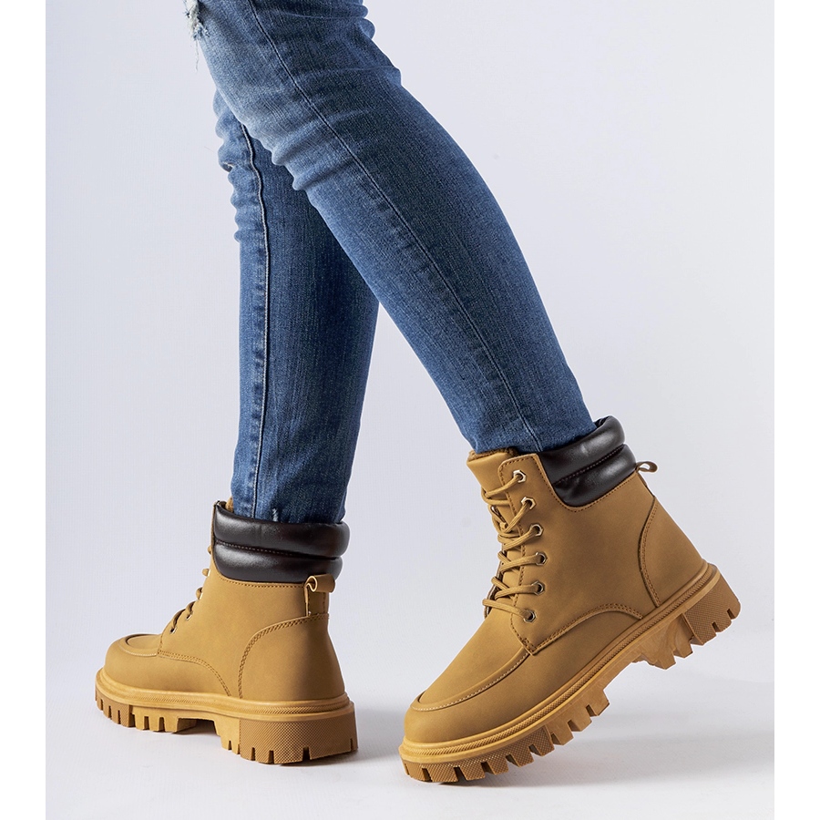 Elegante und praktische Conroe -Arbeiter sind die perfekte Wahl für kühlere Tage. Sie bestehen aus Kamel -ökologischem Leder mit mattem Finish und im Inneren und kombinieren einen modischen Look mit Komfort. Hoher Knöchel, Schnürung und Set auf einer 4 -cm -Plattform - geben Sie dem Figurencharakter, und die abgerundete Nase betont den modernen Stil.