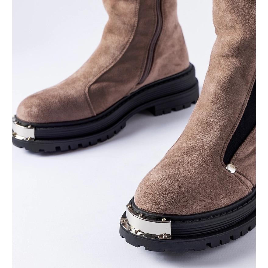 Braun isolierte Stiefel mit einer dekorativen Bologna -Nase - Modell NC1306