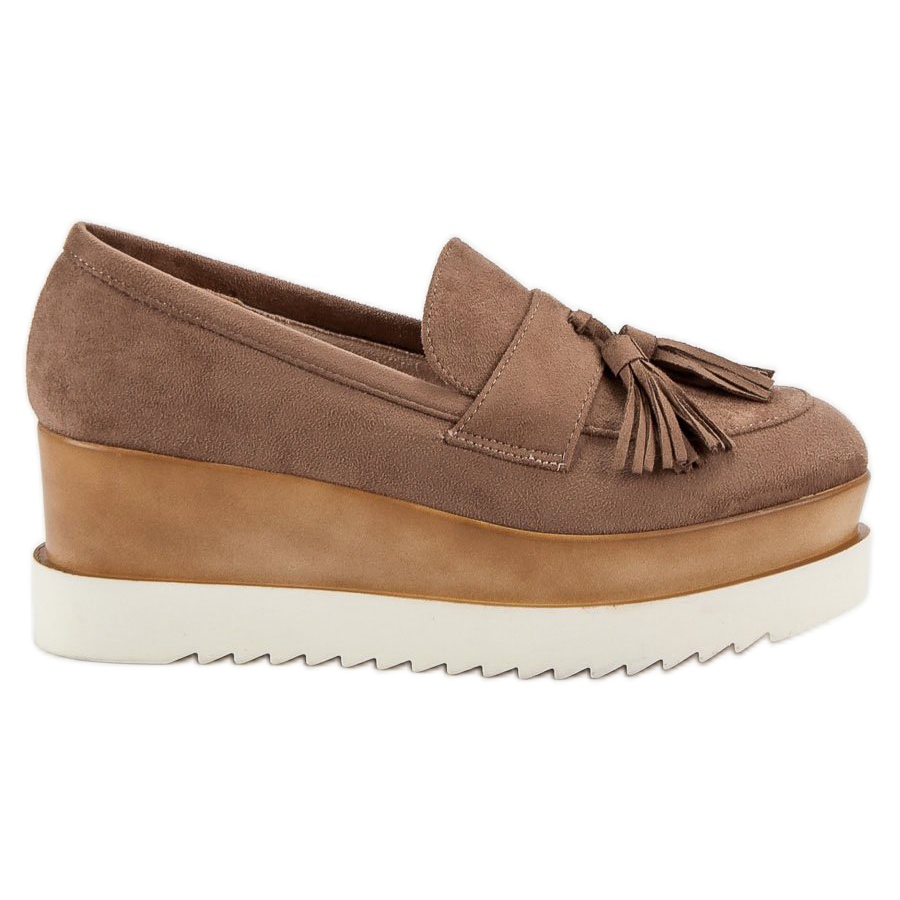 Die Mokassins zeichnen sich durch ein originelles, bequemes Obermaterial und eine aufgebaute, versteifte Ferse aus, die Stabilität bei jedem Schritt garantiert. Mit einer Absatzhöhe von 7 cm verleihen Ihnen diese Schuhe etwas mehr Körpergröße und sorgen gleichzeitig für Tragekomfort. Die runde Spitze sorgt für ein angenehmes Fußgefühl und die Fransen sorgen für einen einzigartigen Charakter, der die Blicke auf sich zieht.