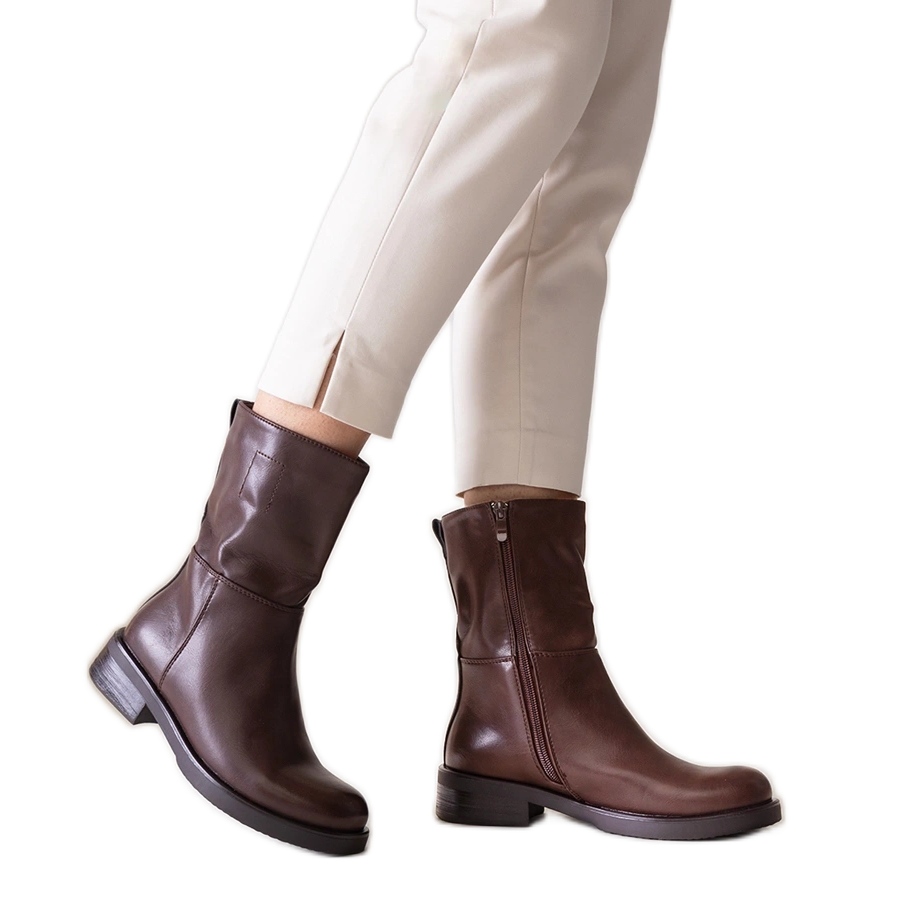 Brown Classic Eco Boots Atyna sind eine gute Wahl für jede Frau, die an kühleren Tagen stilvoller Schuhe sucht. Diese Stiefel aus hochwertigem Bio -Leder kombinieren Eleganz mit Funktionalität, die idealerweise für Herbst- und Winterstilisationen geeignet sind. Die runde Nase verleiht ihnen einen modernen Charakter, und eine flache Ferse mit einer Höhe von 3,5 cm bietet selbst bei langen Spaziergängen Komfort.