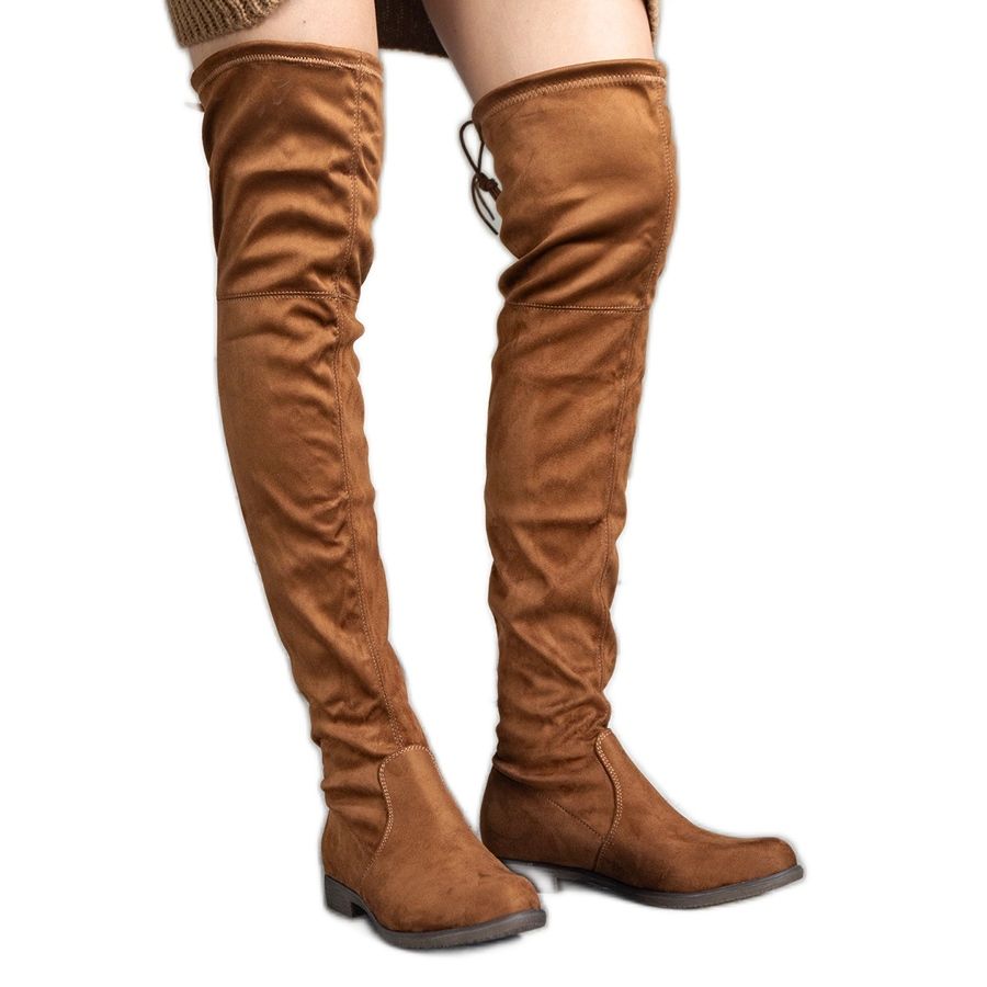 Brown lange Stiefel auf der Plattform aus Öko-East Hallor sind die perfekte Wahl für Frauen, die Stil und Komfort schätzen. Diese modischen Stiefel, die über das Knie reichen, betonen nicht nur die Figur, sondern sorgen auch für den Komfort des Tragens der 2,5 cm hohen Plattform. Sie bestehen aus ökologischem Wildleder und sind durch Haltbarkeit und Flexibilität gekennzeichnet, was die freie Anpassung an den Fuß ermöglicht.