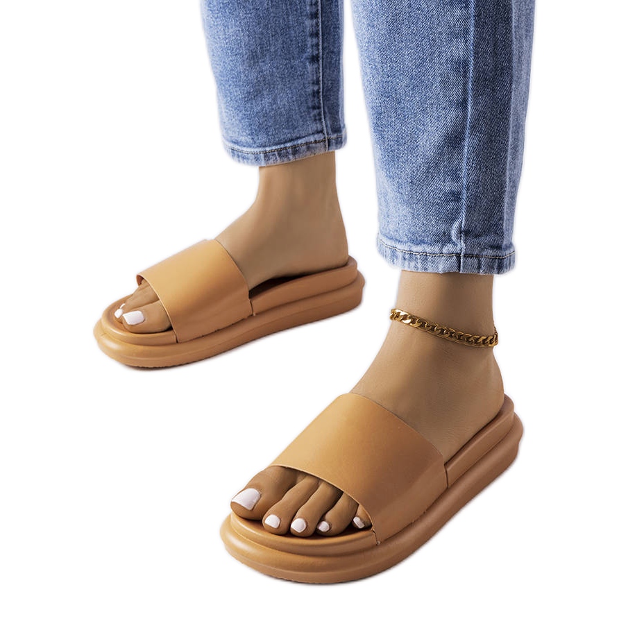 Sie bestehen aus hochwertigem Gummi und sorgen für Langlebigkeit und Widerstandsfähigkeit gegenüber verschiedenen Bedingungen. Ihre braune Farbe passt perfekt zu Sommerstilen. Darüber hinaus garantiert die braune Sohle aus dem gleichen Material ästhetische Konsistenz und Praktikabilität. Die Innensohle aus Ökoleder sorgt dafür, dass jeder Schritt ein Vergnügen ist und das Tragen der Schuhe den ganzen Tag über keine Herausforderung darstellt.