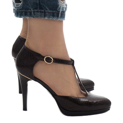 Braune Pumps mit hohen Absätzen A509-22-2 sind eine ideale Wahl für Frauen, die Wert auf Eleganz und Komfort legen. Diese modischen Pumps werden mit einer Schnalle geschlossen, was ihnen Charme verleiht und sie äußerst praktisch macht. Die aus Material mit Schlangenhautstruktur gefertigten Schuhe haben einen originellen Look, der perfekt zu aktuellen Trends passt.