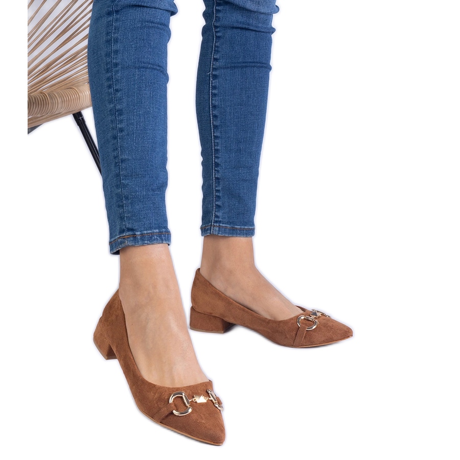 Details: Braune Pumpen von Ekozamsz mit einer goldenen Dekoration