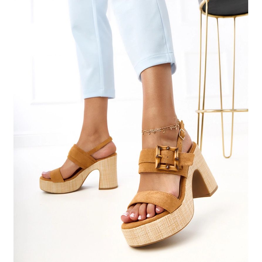 Inna marka Braune Sandalen auf dem mit Elevira -Klemme dekorierten Pfosten