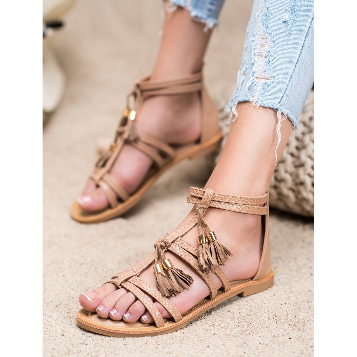 SHELOVET SHELOVET Braune Sandalen mit Fransen