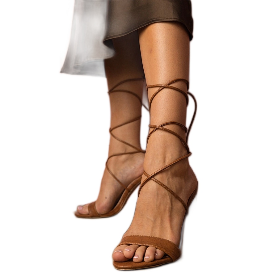 Elegante Camel Aceline -Sandalen sind eine Kombination aus zeitloser Schnitt und Sommerleichtigkeit. Das Modell für einen stabilen Beitrag eignet sich hervorragend für den alltäglichen und eleganteren Stil. Mit dem geschnürten Verschluss können Sie den Schuh mit dem Kalb anpassen und dem Look eine subtile Finesse verleihen.