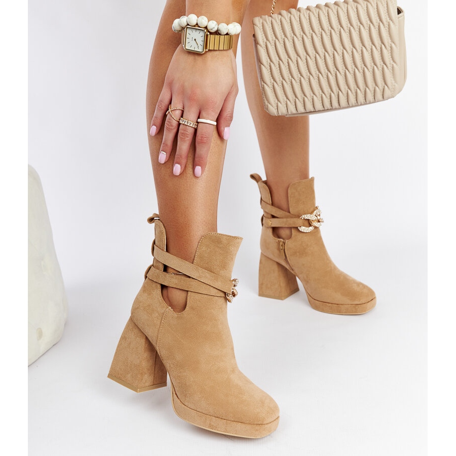 Inna marka Braune Stiefeletten, verziert mit Ulmen-Zirkoniasteinen beige