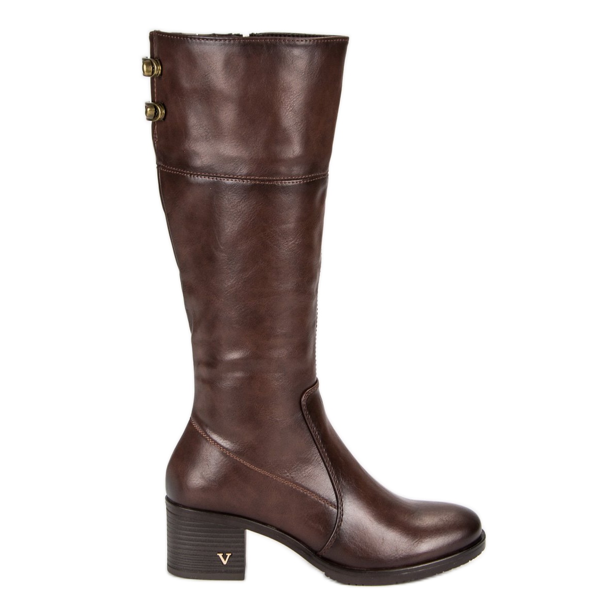 Braune Stiefel mit hohen Absätzen von Vinceza sind die perfekte Wahl für Frauen, die im Herbst und Winter Stil mit Komfort kombinieren möchten. Diese eleganten Lederschuhe passen perfekt zu den neuesten Modetrends und sind somit eine perfekte Ergänzung sowohl zu lässigen als auch zu klassischen Stilen.
