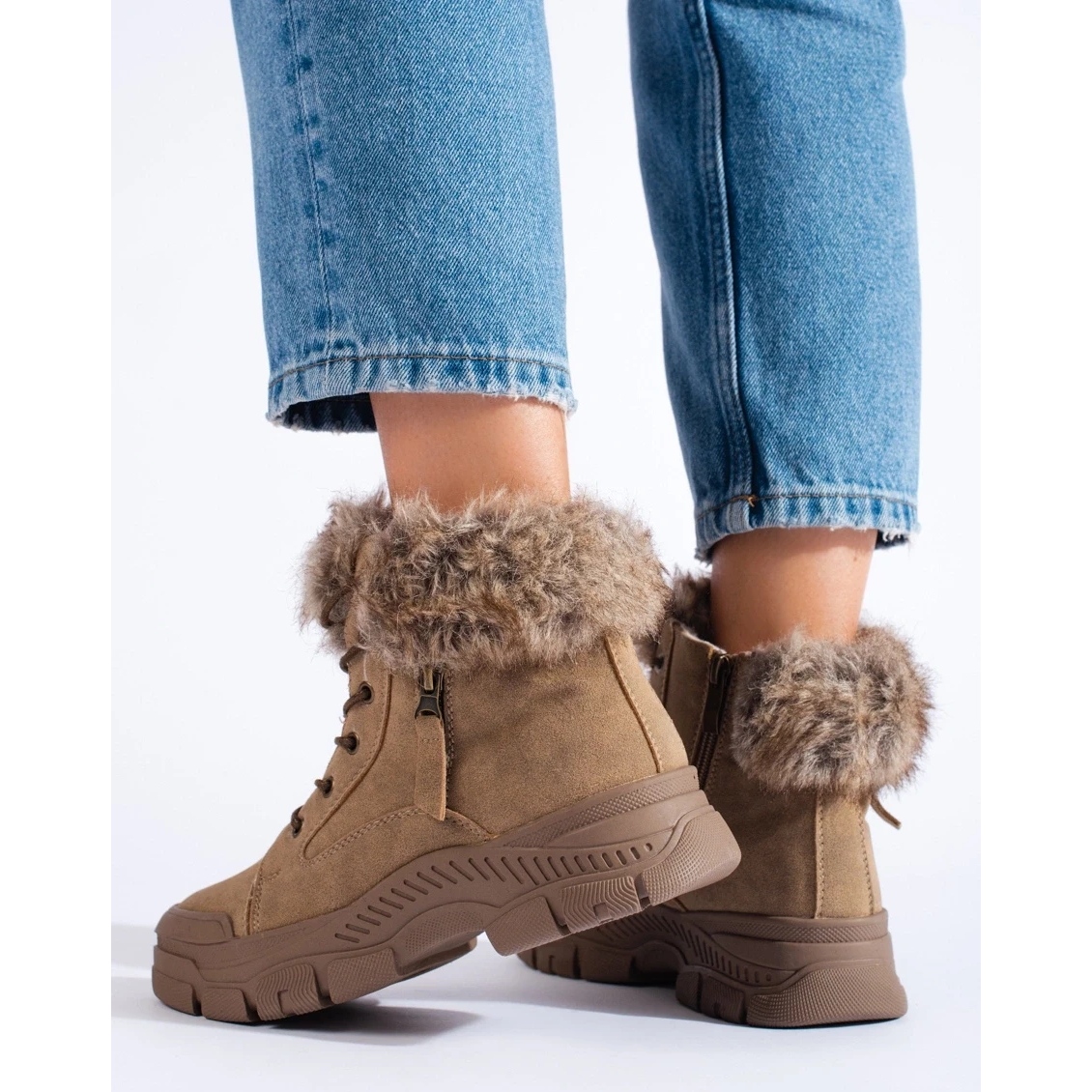 Inna marka Braune Wanderschuhe für Damen mit Fell beige