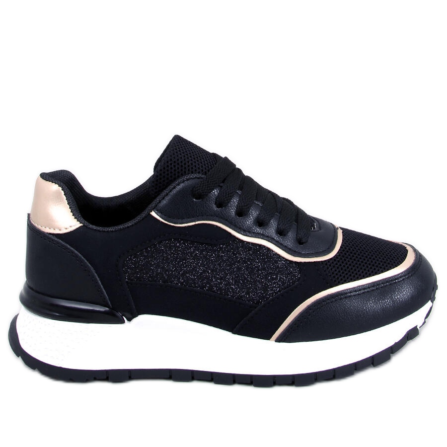 Breland Black ist Sports -Sport -Sneaker für Frauen mit einer spektakulären, hohen Sohle (Plattform ca. 5,5 cm), die jeden Tag einen modischen Look mit Komfort kombinieren. Der formelle Schnitt wurde durch metallische und glitzernde Einsätze ergänzt, dank der die Schuhe sowohl für lässige als auch für ausdrucksstärkere Stylisationen eignen.