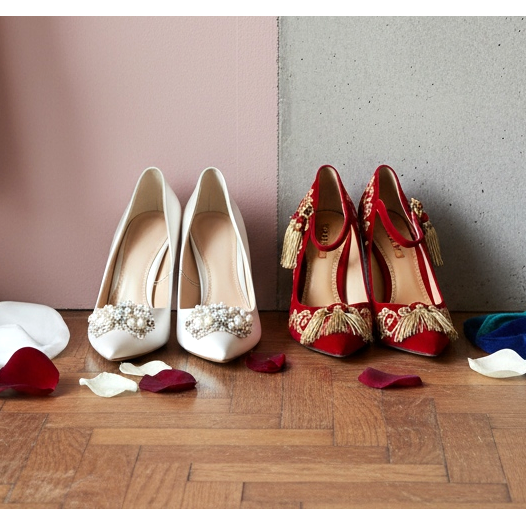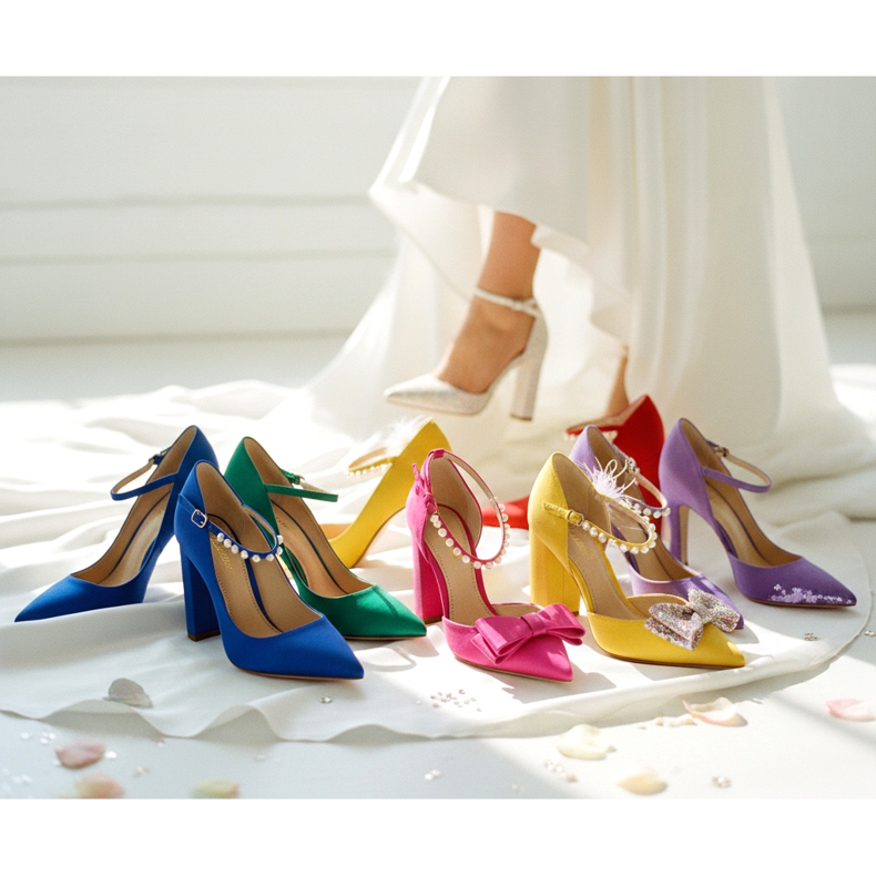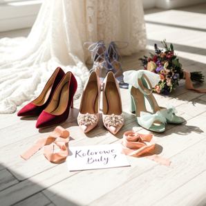 Weiße Hochzeitsschuhe sind keine Pflicht mehr. Immer mehr Bräute entscheiden sich für farbenfrohe High Heels – von Pastell bis Rot. Erfahren Sie, wie Sie farbenfrohe Schuhe für ein Kleid auswählen und warum dies eine praktische Wahl ist.