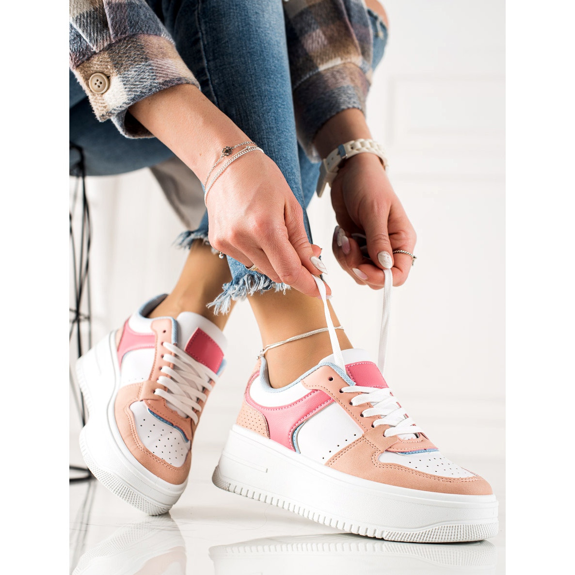 Details: TRENDI Bunte modische Turnschuhe beige weiß blau rosa