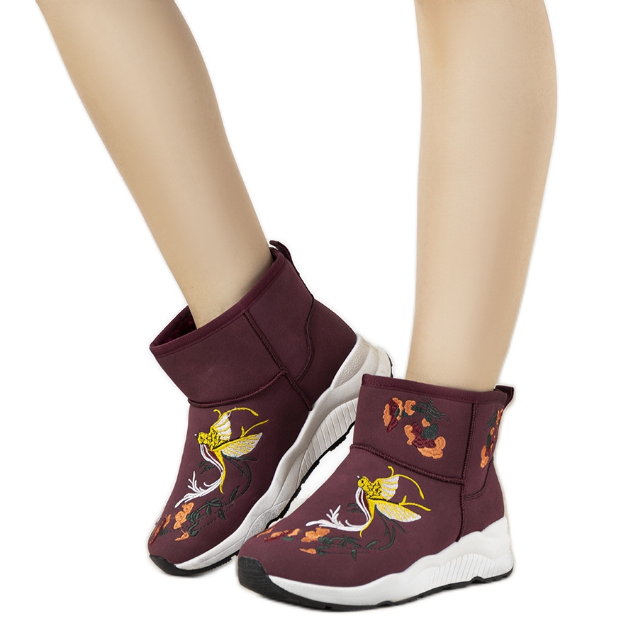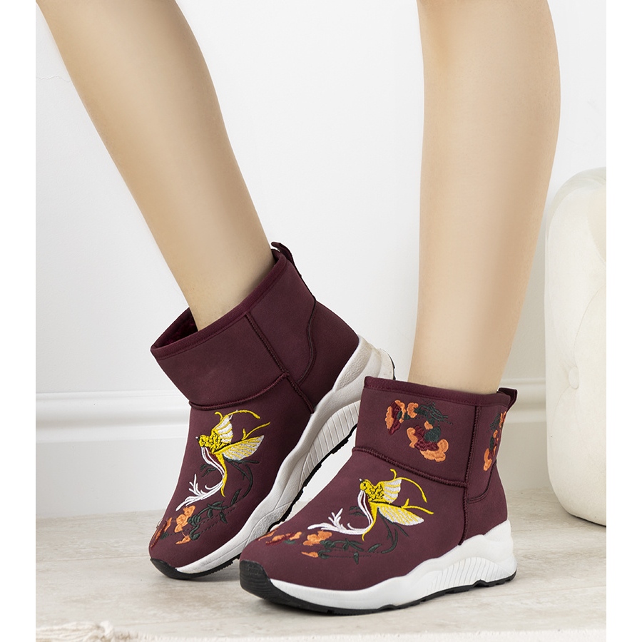 Inna marka Burgunder-Schneestiefel mit Jamil-Stickerei rot