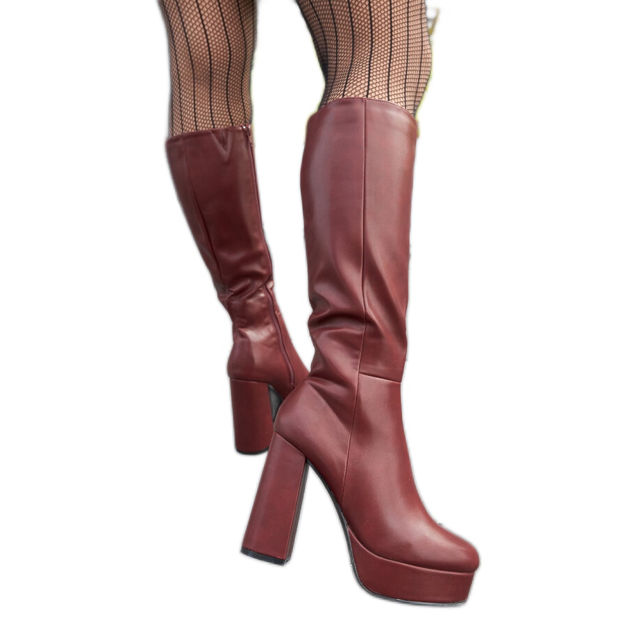 Details: Burgunderrote Plateau- und High-Heel-Stiefel von Zoccorino